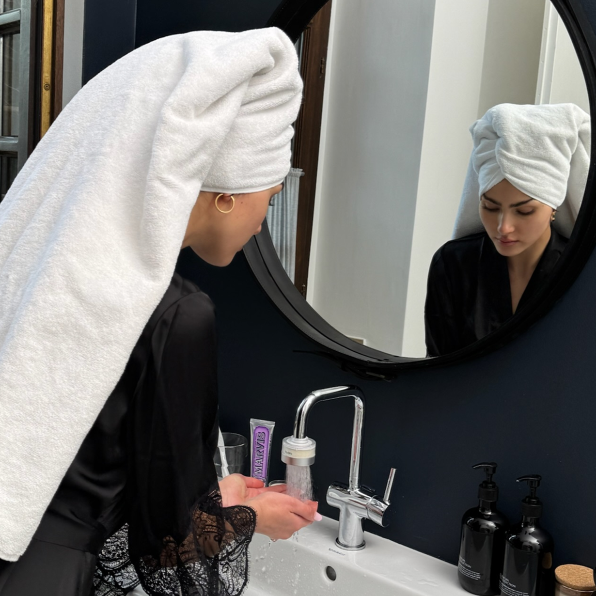 tāep is designed to elevate your daily bathroom rituals from brushing your teeth and cleansing your face to washing your hands. It delivers noticeably softer, cleaner water for everything your skin touches.